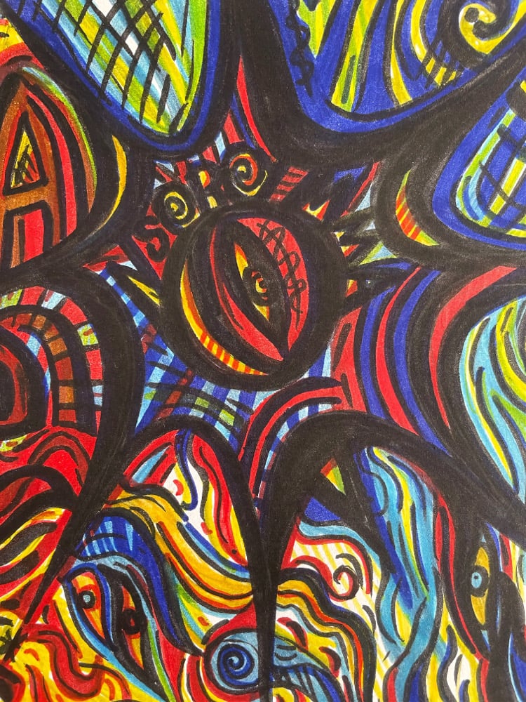 This artwork by Janina Nana Yaa is visual response to Justin Shukuru Mulindwa’s poem. This piece channels the grief, fire, and defiant spirit of the Congo through explosive color and layered symbolism.
